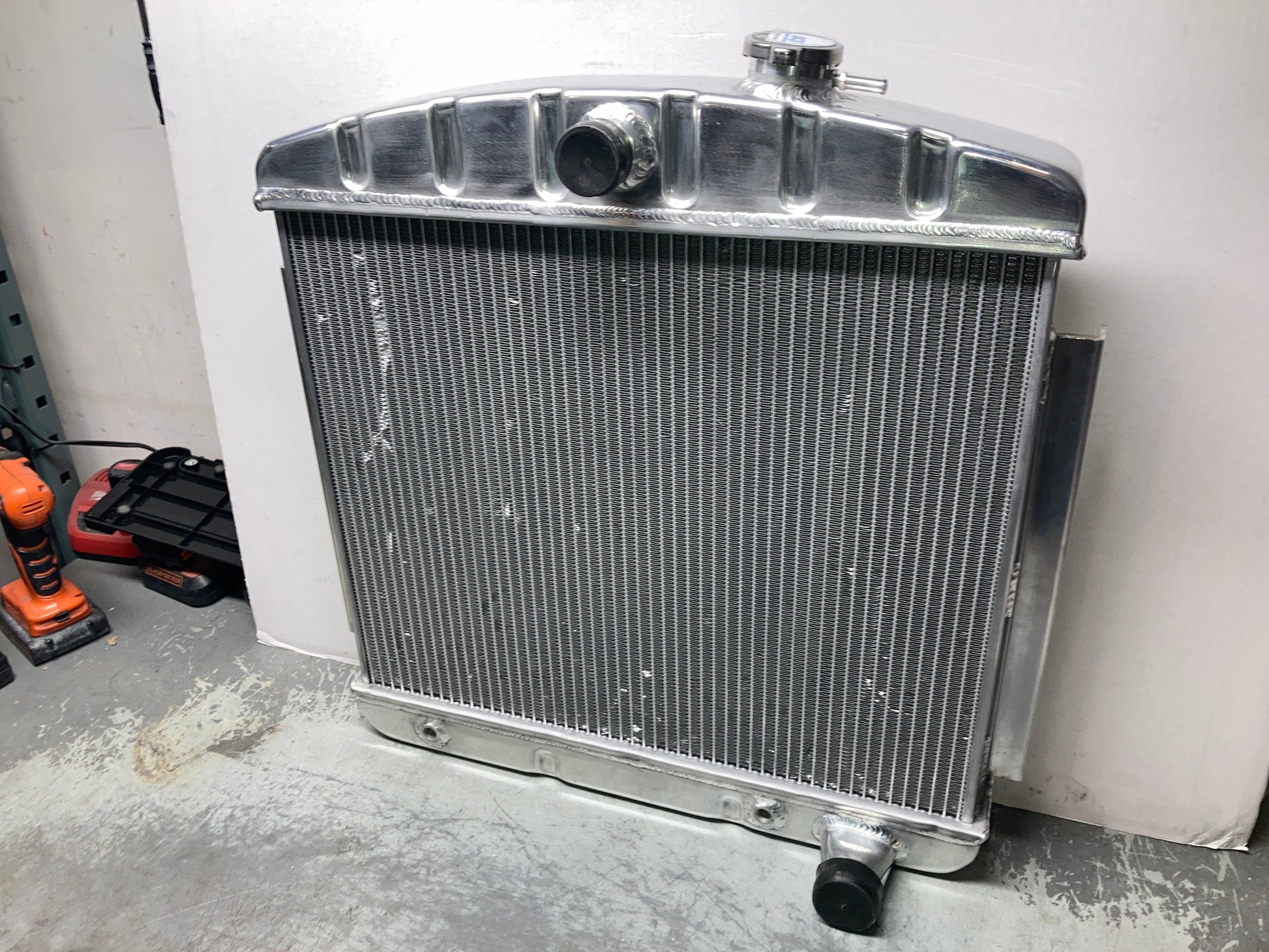 Just in - this is a scratch and dent inventory price. This bad boy has light fin damage, from a previous installation attempt. Aside from that it's in great shape and ready to drop in your 55 - 57 Chevy. It's been leak tested and guaranteed not to leak. Get it now for %30 off the price of a brand new model.
