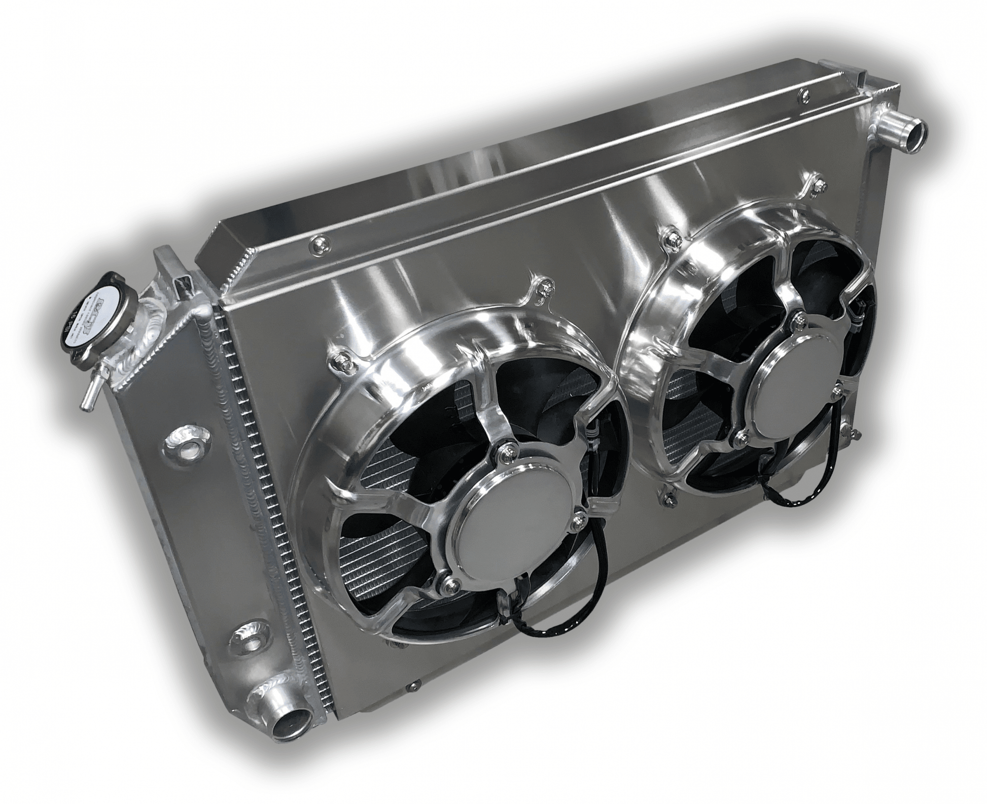 – All aluminum construction with a heavy duty 2-row core with 1.0″ tubes
