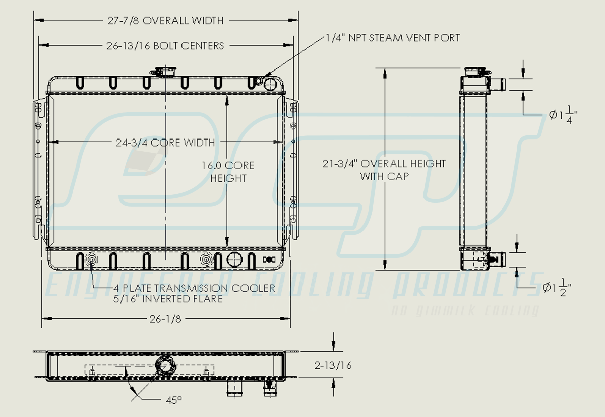 For ease of plumbing to your LSX/LTX engine, both hose connections of this radiator on the passenger side. As an added bonus, this radiator is a dual-pass radiator, meaning the coolant makes two passes through the radiator, which improves cooling effectiveness by over 20%.