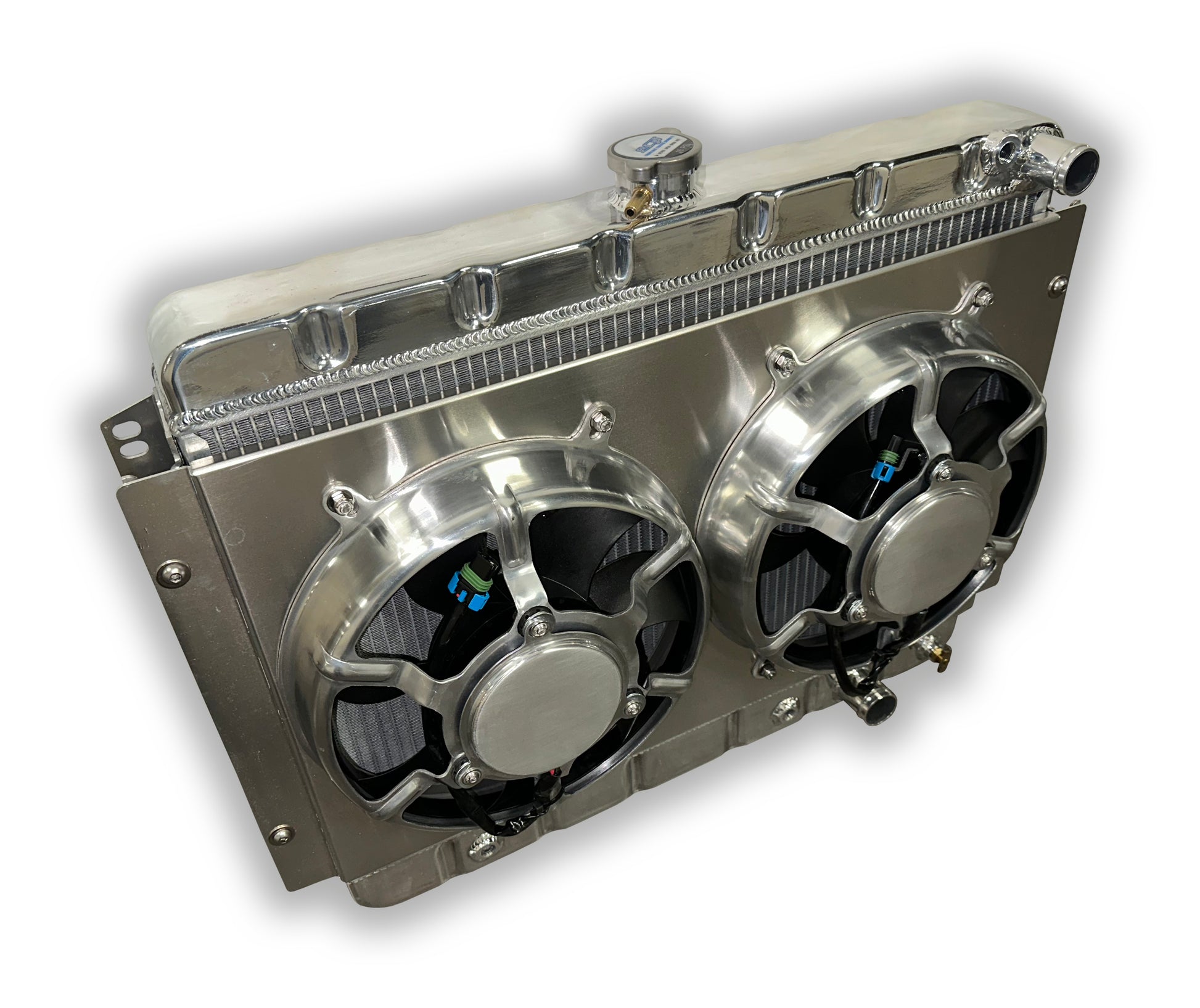 ECP 1959 - 1968 Impala LSX/LTX Conversion Aluminum Radiator - Dual 11" HPX Aluminum Fans 3200 CFM And Shroud