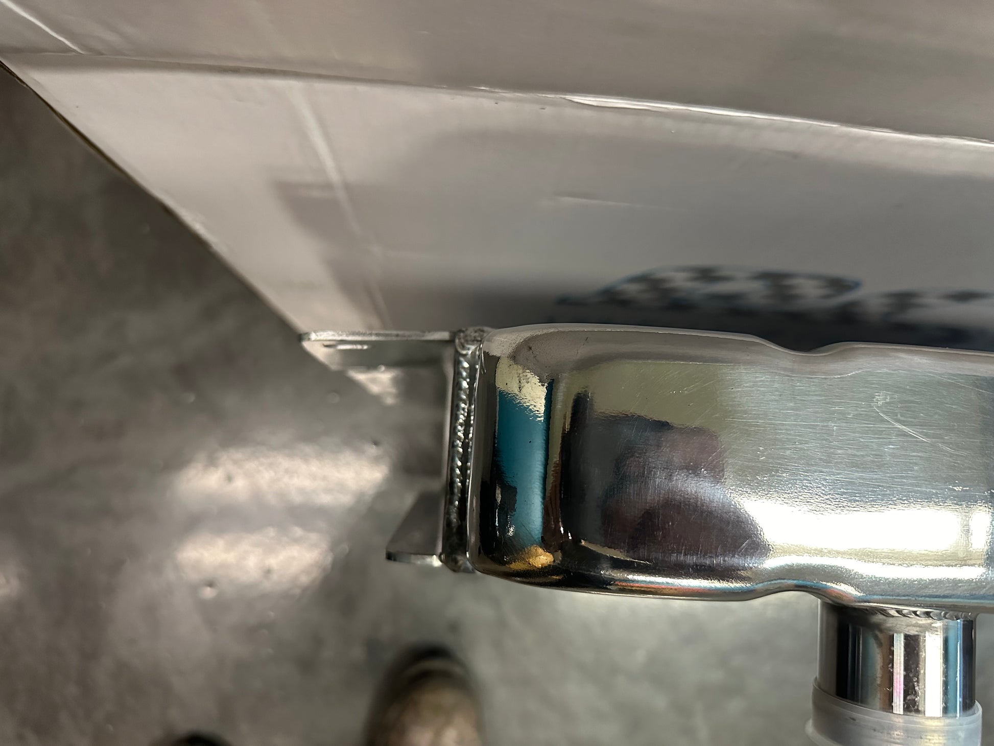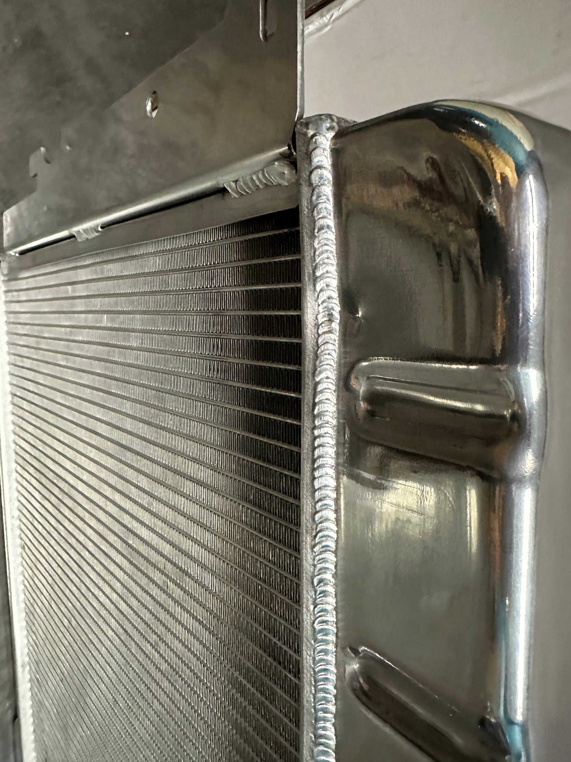 It has a very mildly bent bracket on the drivers side and a small ding on the tank on the grille side of the radiator. Leak tested and ready to drop in. Full warranty.